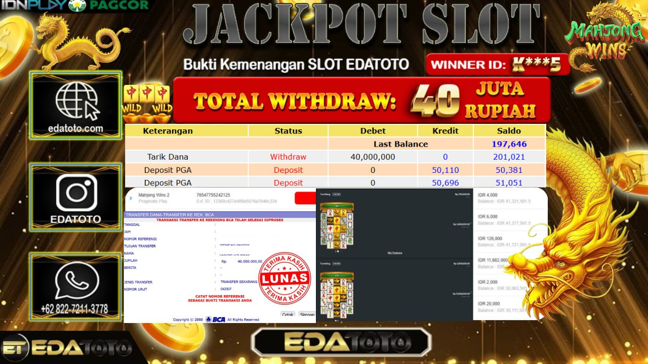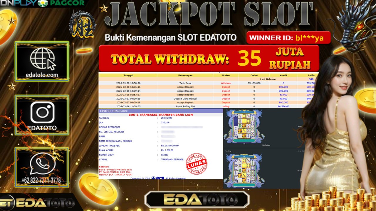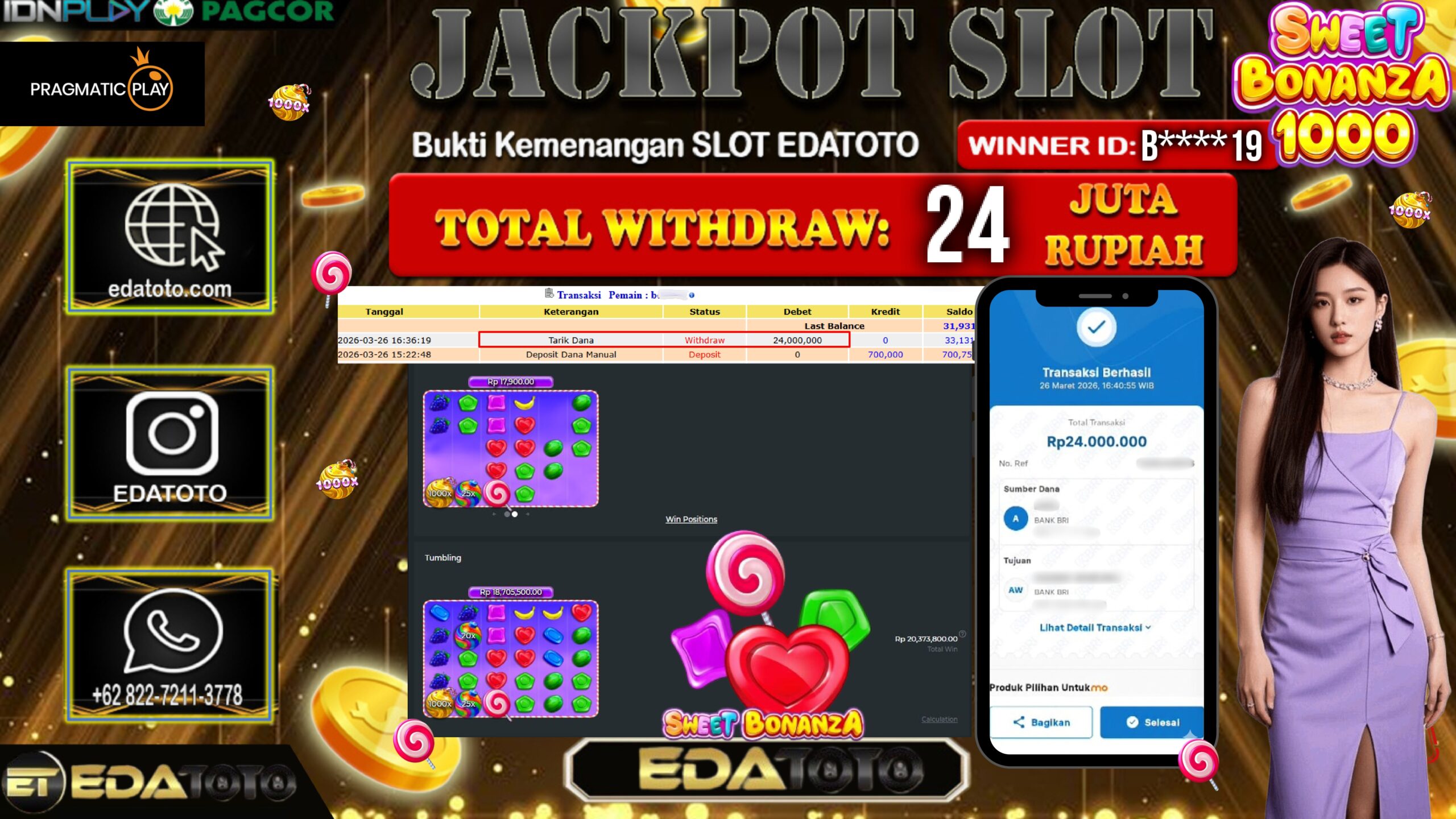Selamat Kepada Pemilik user ID : K***5 Hari/Tanggal : Rabu / 25 MARET 2026 Jackpot : Rp,  24,784,558 JT Withdraw . . .