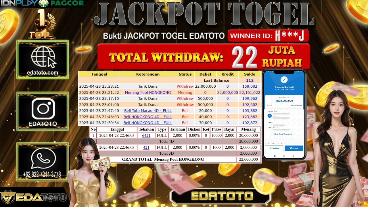 Selamat Kepada Pemilik user ID : H***J Hari/Tanggal : Selasa/ 29, April 2025 Jackpot : Rp. 20.000.000 JT Permainan : TOGEL . . .