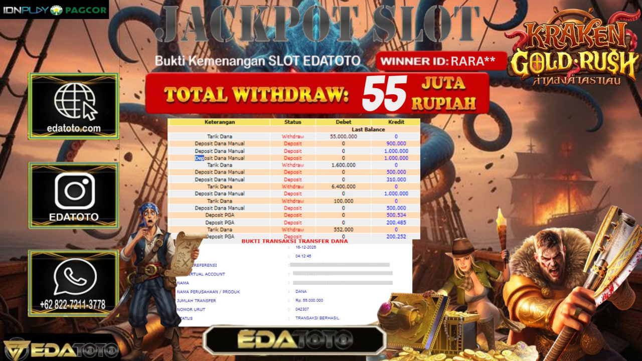 Selamat Kepada Pemilik user ID : RARA** Hari/Tanggal :kamis/ 15, Desember 2025 Jackpot : Rp. 55,000,000 JT Withdraw : 55,000,000 . . .