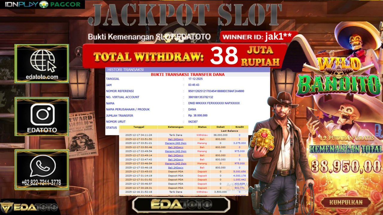 Selamat Kepada Pemilik user ID : jak1** Hari/Tanggal :kamis/ 16, Desember 2025 Jackpot : Rp. 38,000,000 JT Withdraw : 38,000,000 . . .