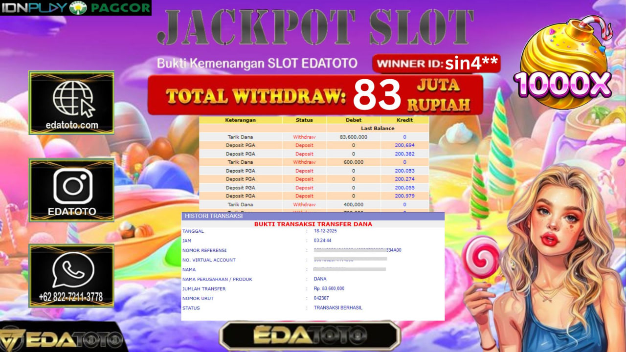 Selamat Kepada Pemilik user ID : sin4** Hari/Tanggal :kamis/ 17, Desember 2025 Jackpot : Rp. 83,600,000 JT Withdraw : 83,600,000 . . .