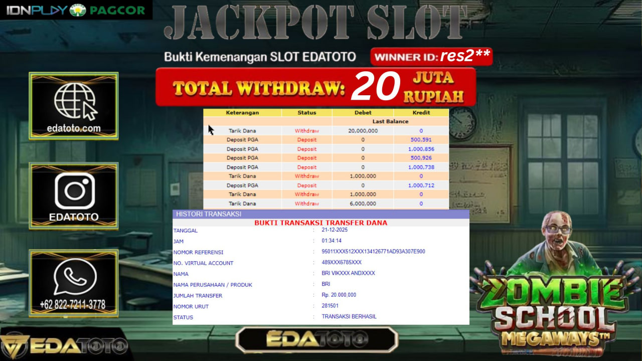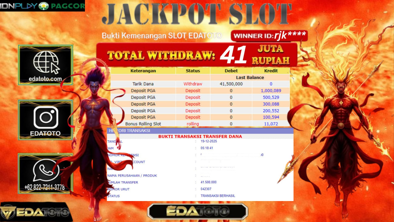 Selamat Kepada Pemilik user ID : rul*** Hari/Tanggal :kamis/ 20, Desember 2025 Jackpot : Rp. 20,000,000 JT Withdraw : 20,000,000 . . .