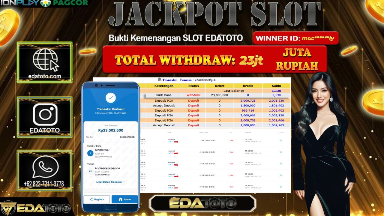 Selamat Kepada Pemilik user ID : moc*****ly Hari/Tanggal : Senin / 23 , FEBRUARY 2025 Jackpot : Rp. 23.000.000 JT . . .